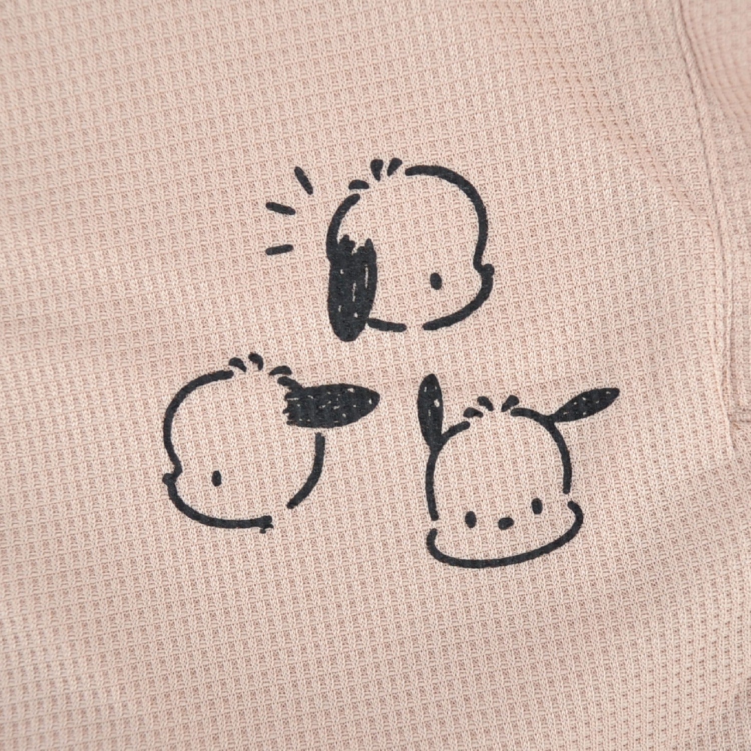 可愛いポチャッコがプリントされたTシャツとパンツと巾着がセットになっていてドライワッフル素材なので